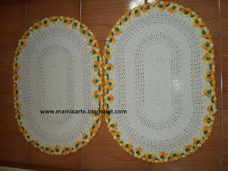 Olá, : fiz este modelo com 5 pétalas. Trabalhei este acabamento em um modelo oval de carreiras em p.a. alternadamente com carreiras de ponto V (1 p.a.,1 corr., 1 p.a.). Escolha o modelo de tapete de sua preferência e... mãos a obra! Abaixo verá o pap (passo a passo).