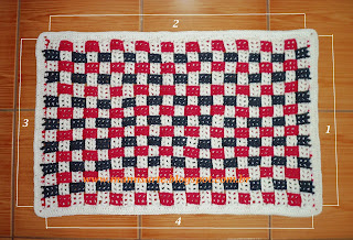 Acabamento: trabalhe 1 carr. em p.a. e 1 carr. em p.b., contornando o tapete.