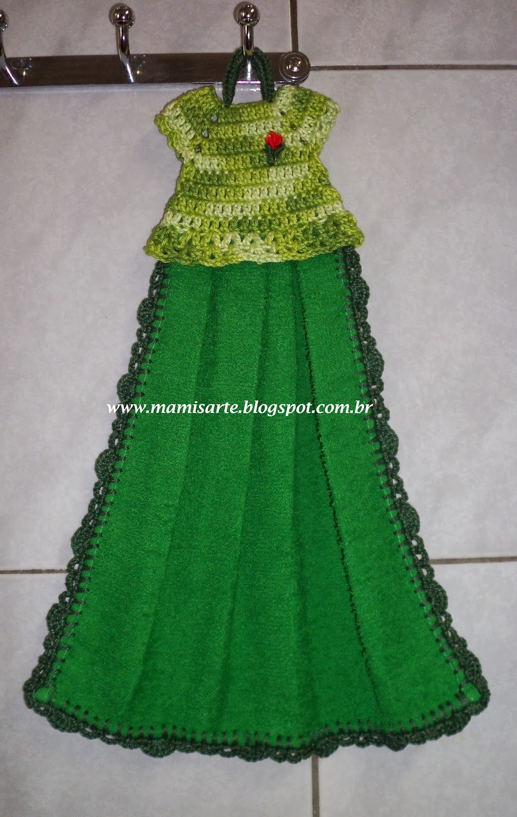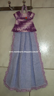 Desenvolvi este modelo para dar um toque a mais de elegância na cozinha. A abertura na parte da frente é para o acesso à boca do saco, que você vê fechado com a fita de cetim.
